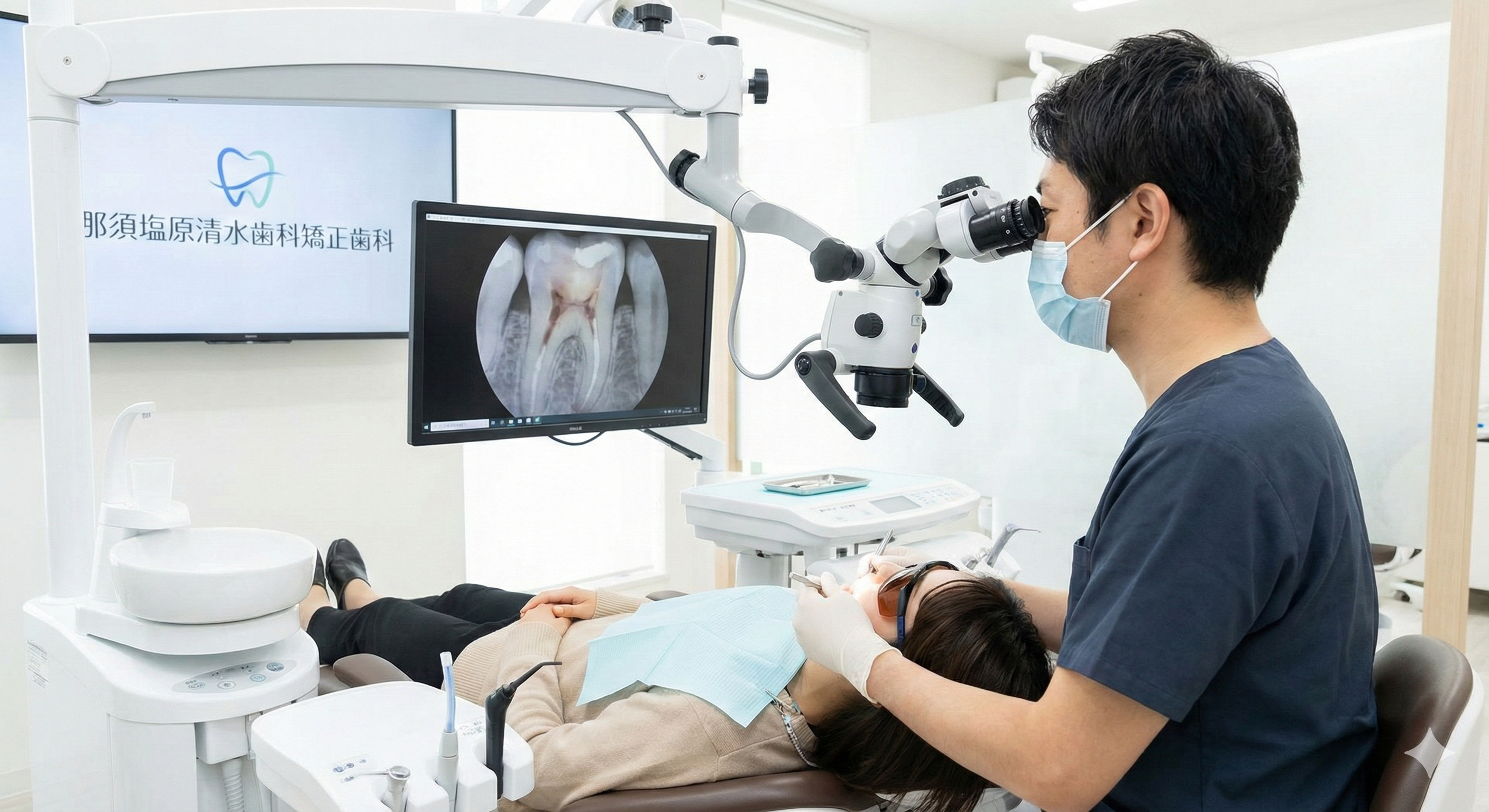 那須塩原清水歯科矯正歯科では、必要に応じてマイクロスコープを活用し、検査と説明を重ねながら、患者さんが納得して治療を選べることを大切にしています。症状や治療歴は人それぞれです。まずは現状を確認し、治療の選択肢と見通しを聞くところから始めてみてください。相談・カウンセリングや初診予約の導線に加え、根管治療、CT、詰め物・被せ物、セラミックなど関連メニューへの案内も用意しておくと、次の行動につながりやすくなります。