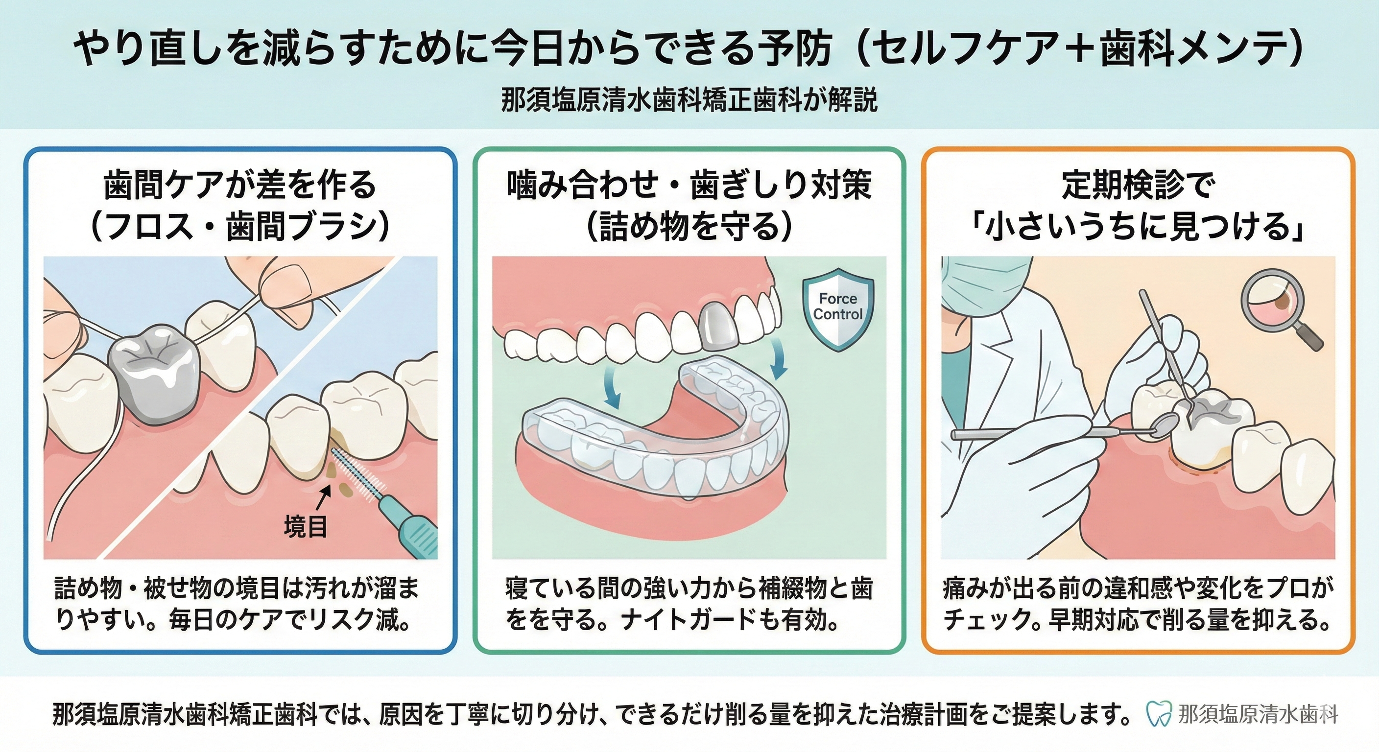 やり直しを減らすために今日からできる予防(セルフケア+歯科メンテ)