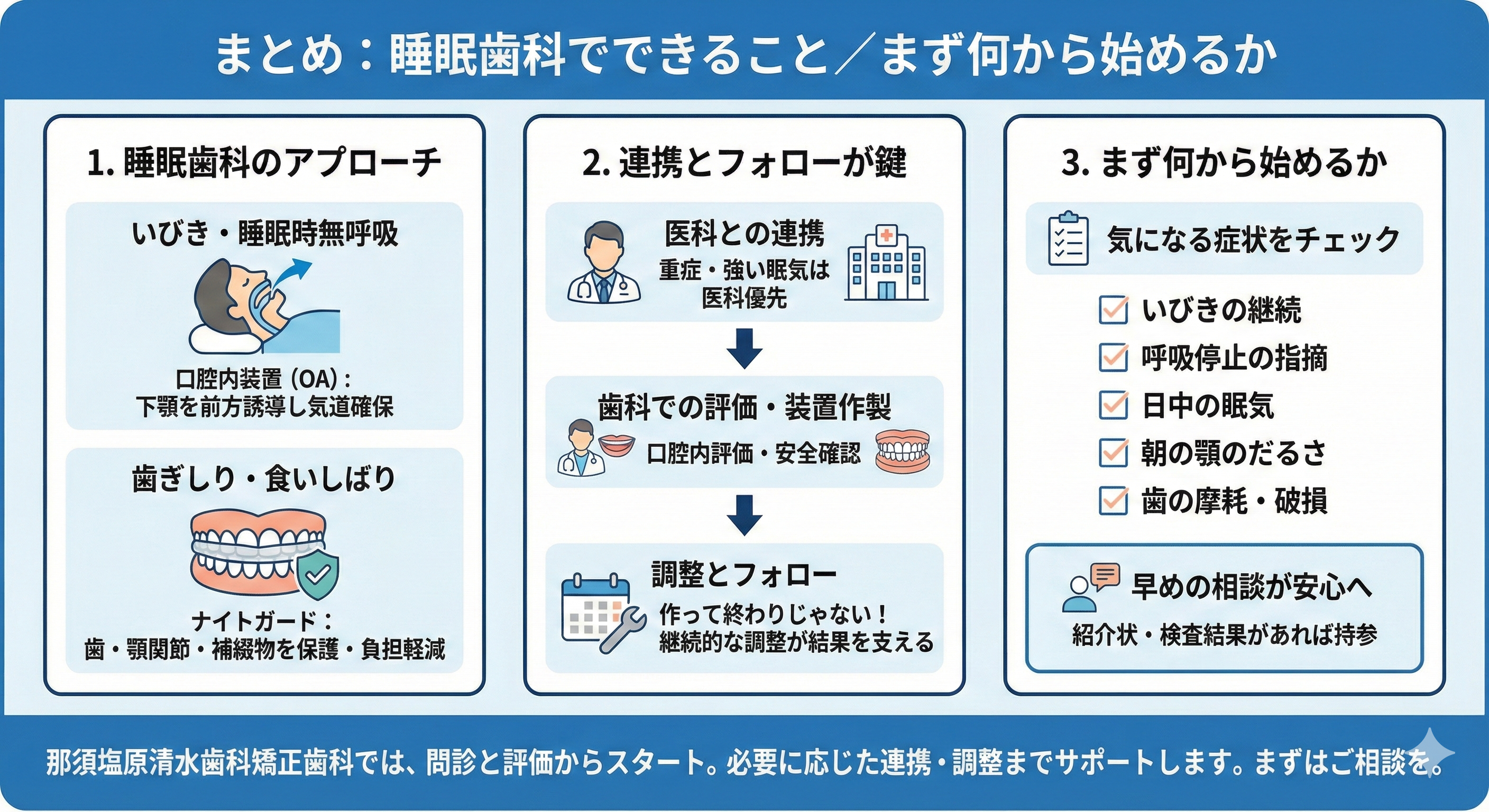 まとめ:睡眠歯科でできること/まず何から始めるか