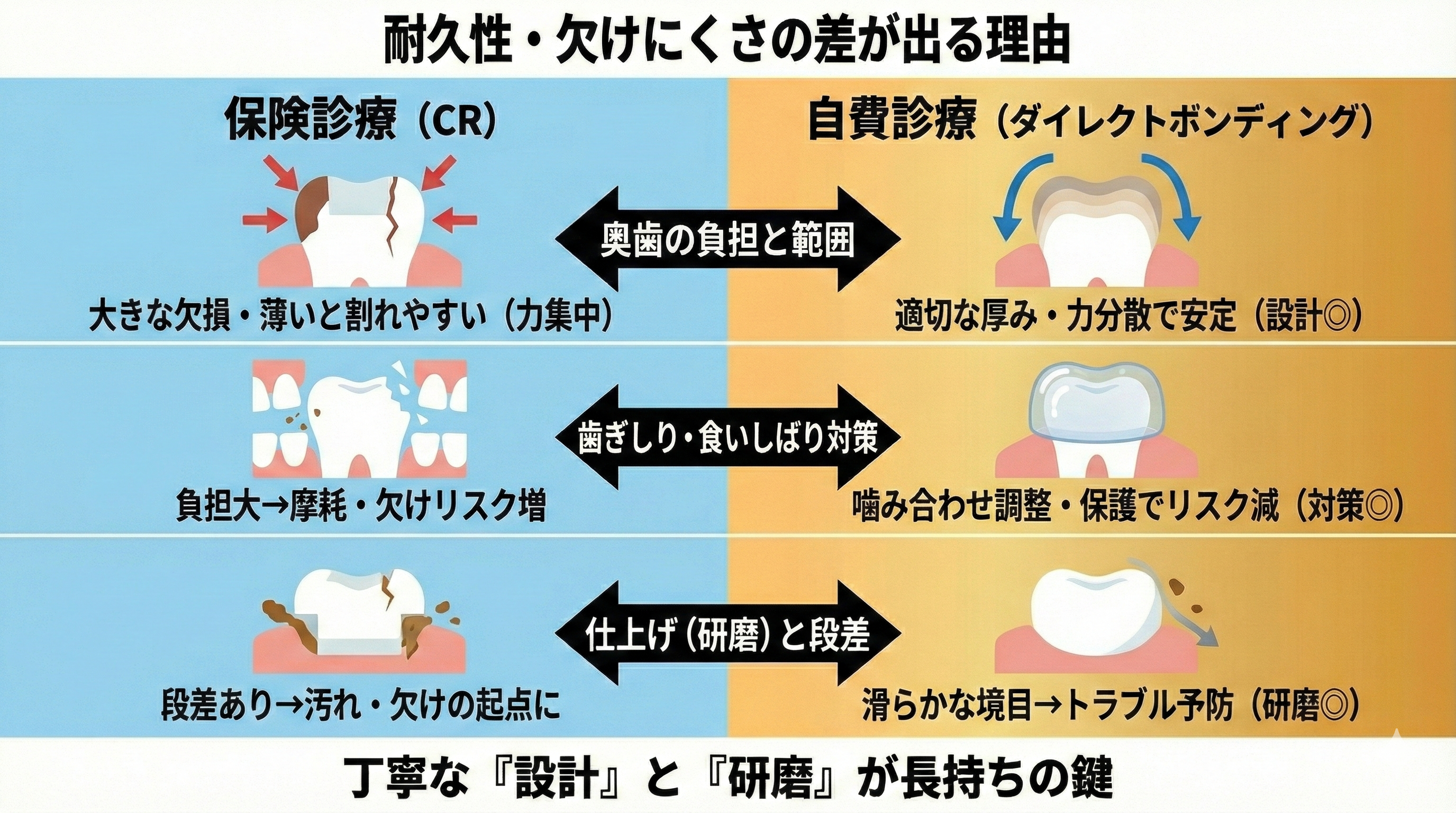 CRとダイレクトボンディングの違い【耐久性・欠けにくさ】
