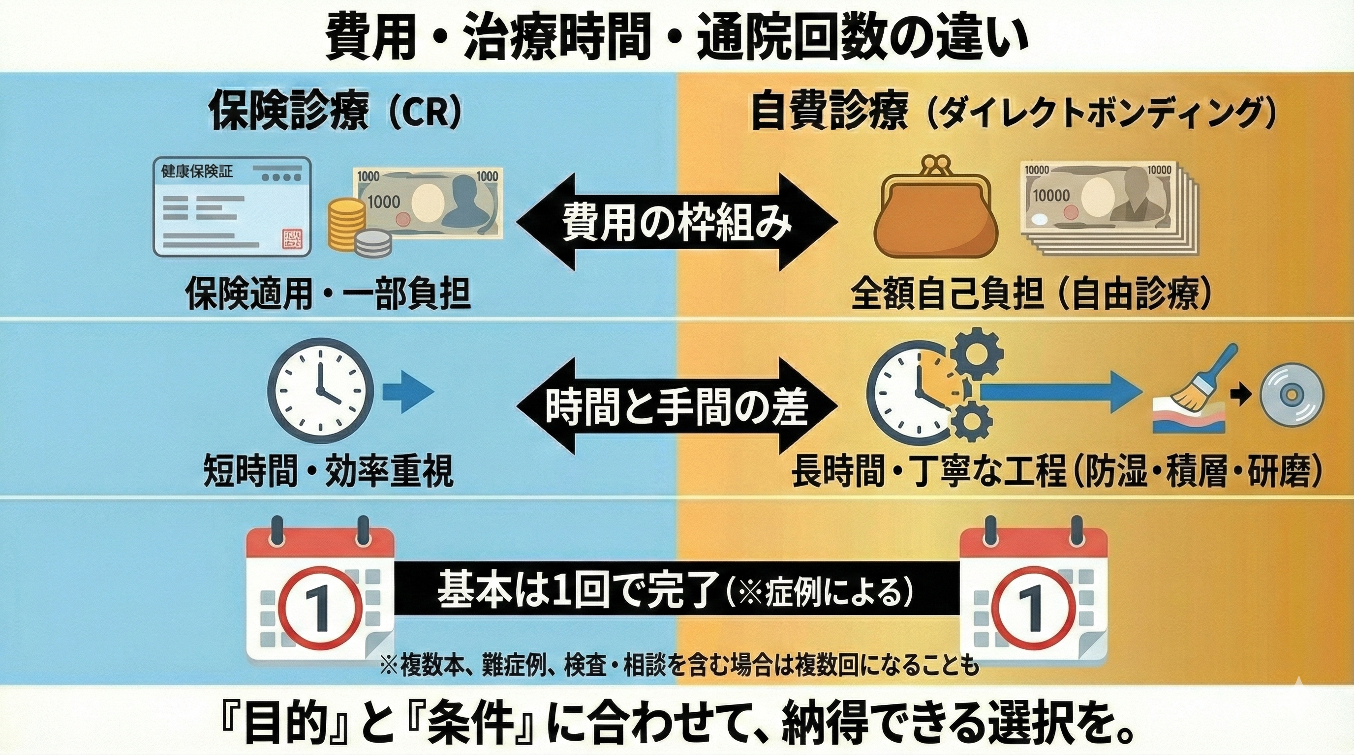 CRとダイレクトボンディングの違い【費用・治療時間・通院回数】