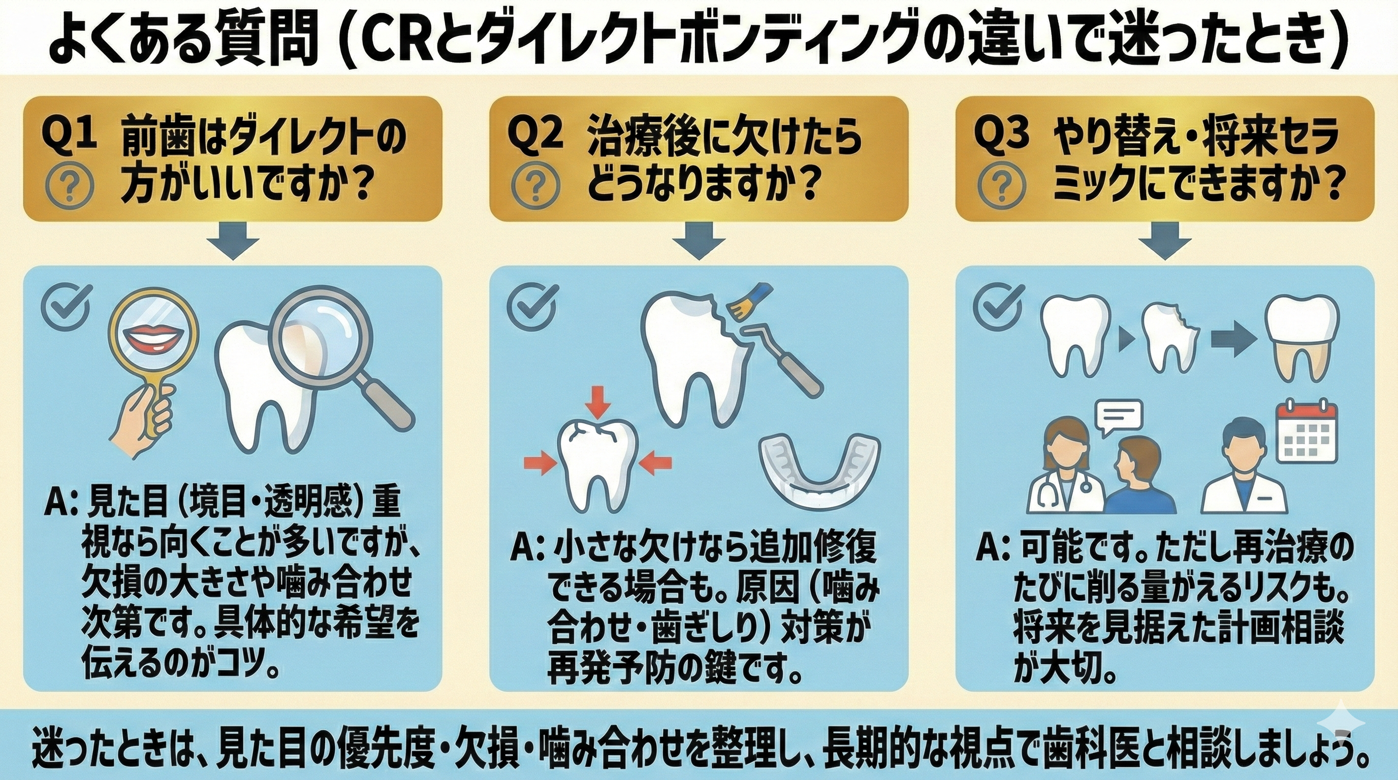 よくある質問(CRとダイレクトボンディングの違いで迷ったとき)