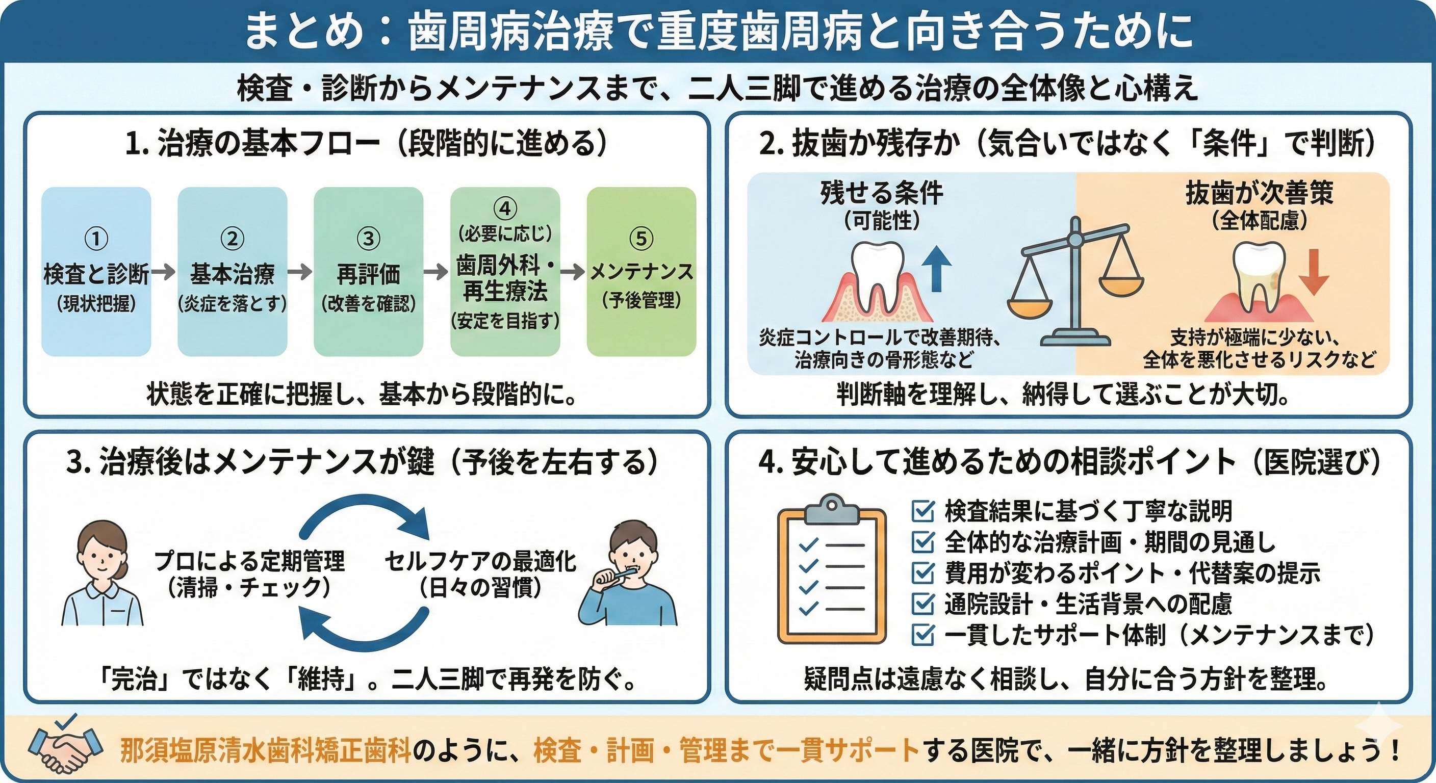 まとめ:歯周病治療で重度歯周病と向き合うために