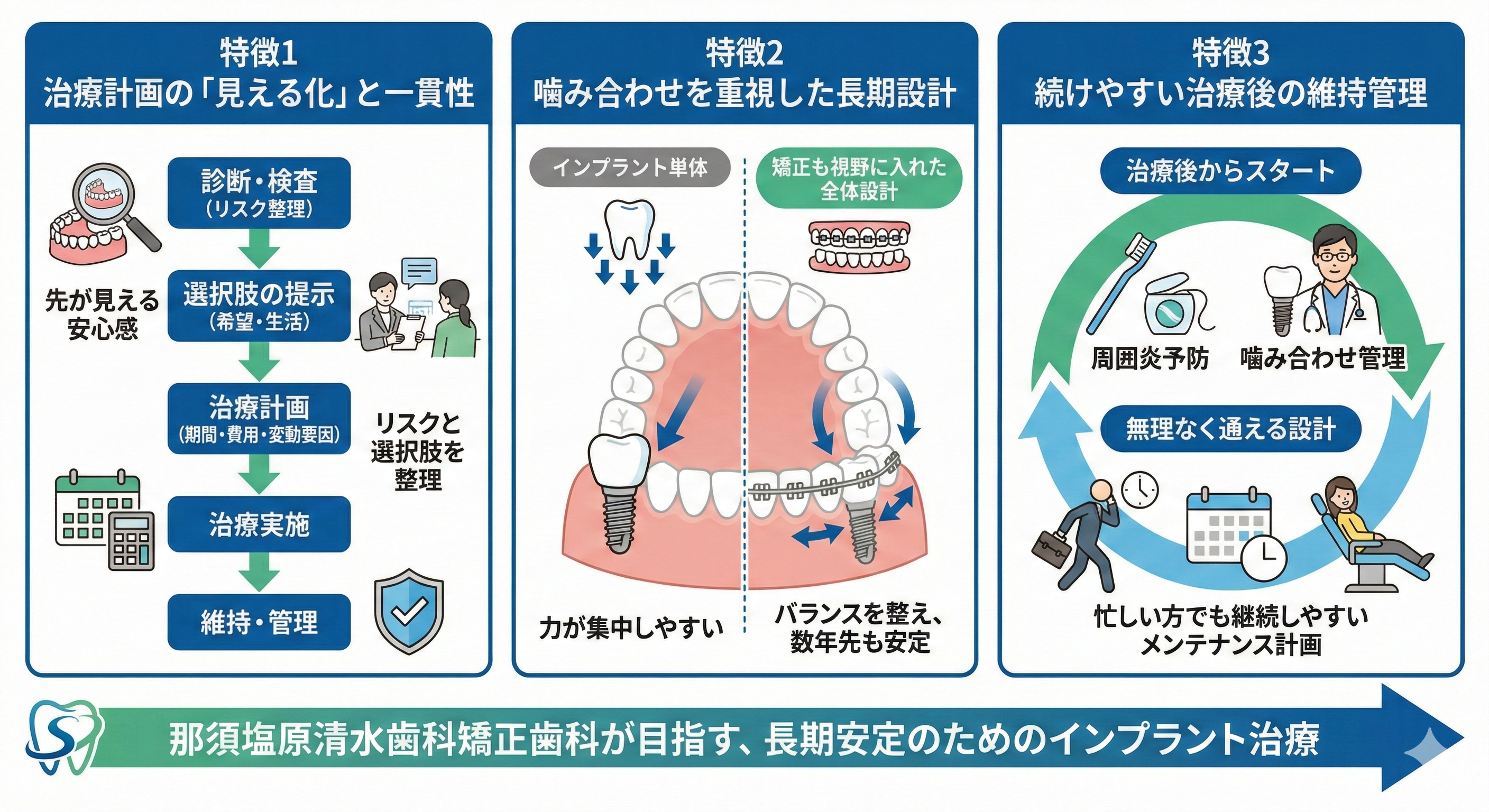 那須塩原清水歯科矯正歯科のインプラント治療の特徴