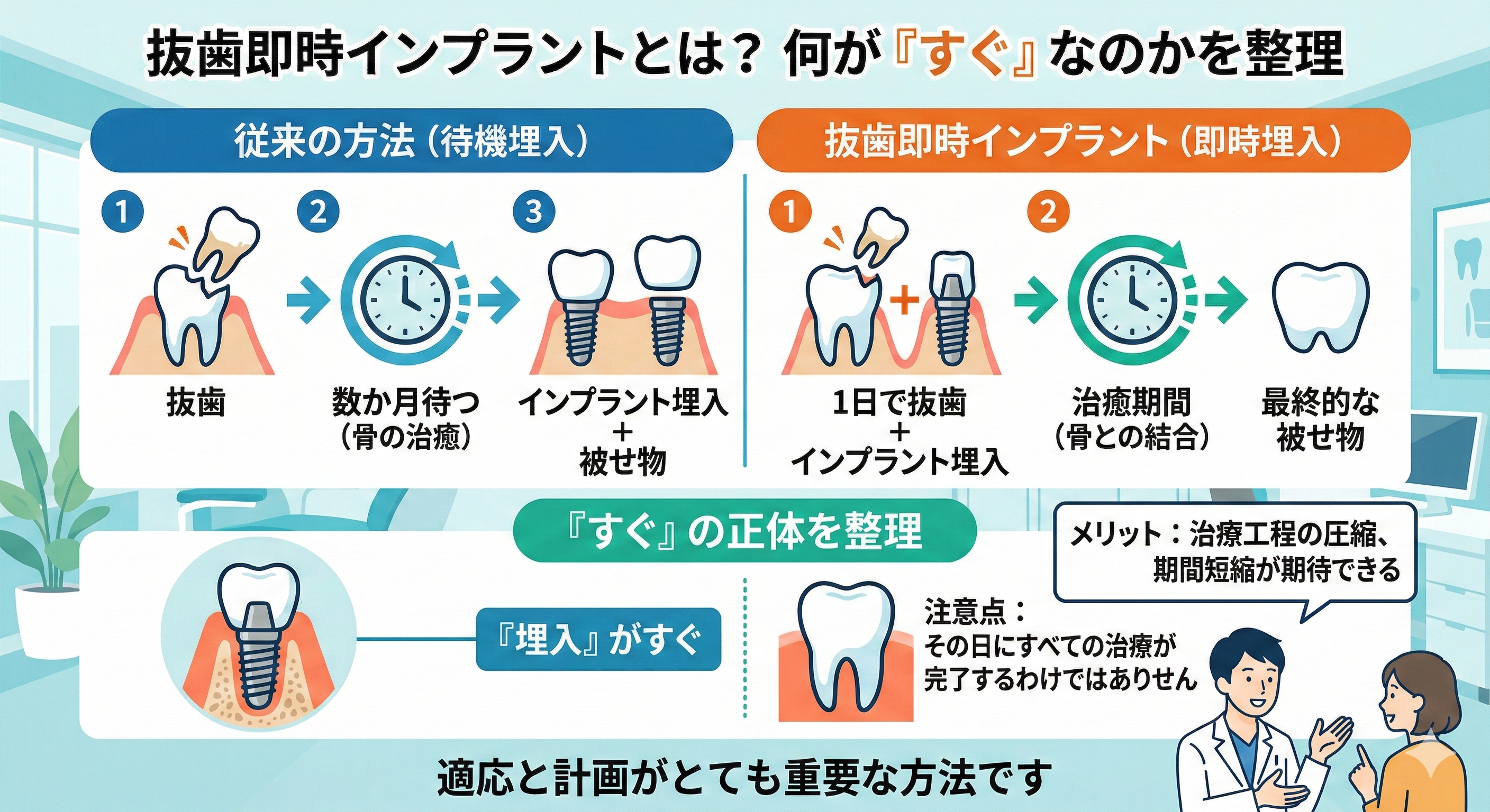 抜歯即時のメリット:短縮できる可能性があるのはどこ?