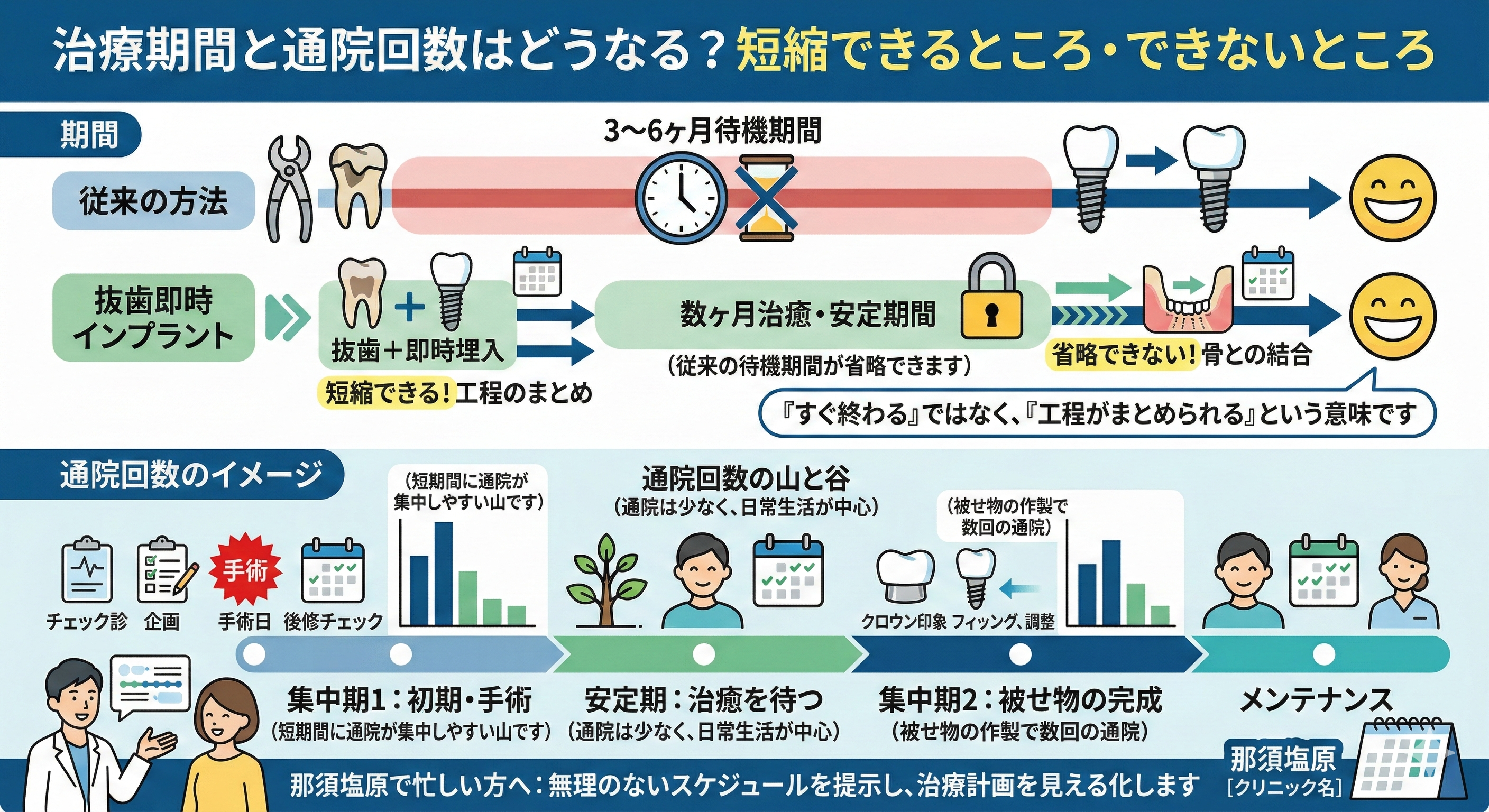 治療期間と通院回数はどうなる?短縮できるところ・できないところ