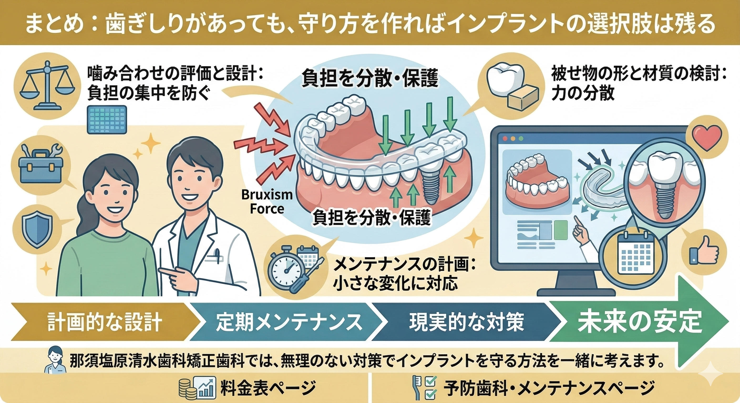 まとめ:歯ぎしりがあっても、守り方を作ればインプラントの選択肢は残る