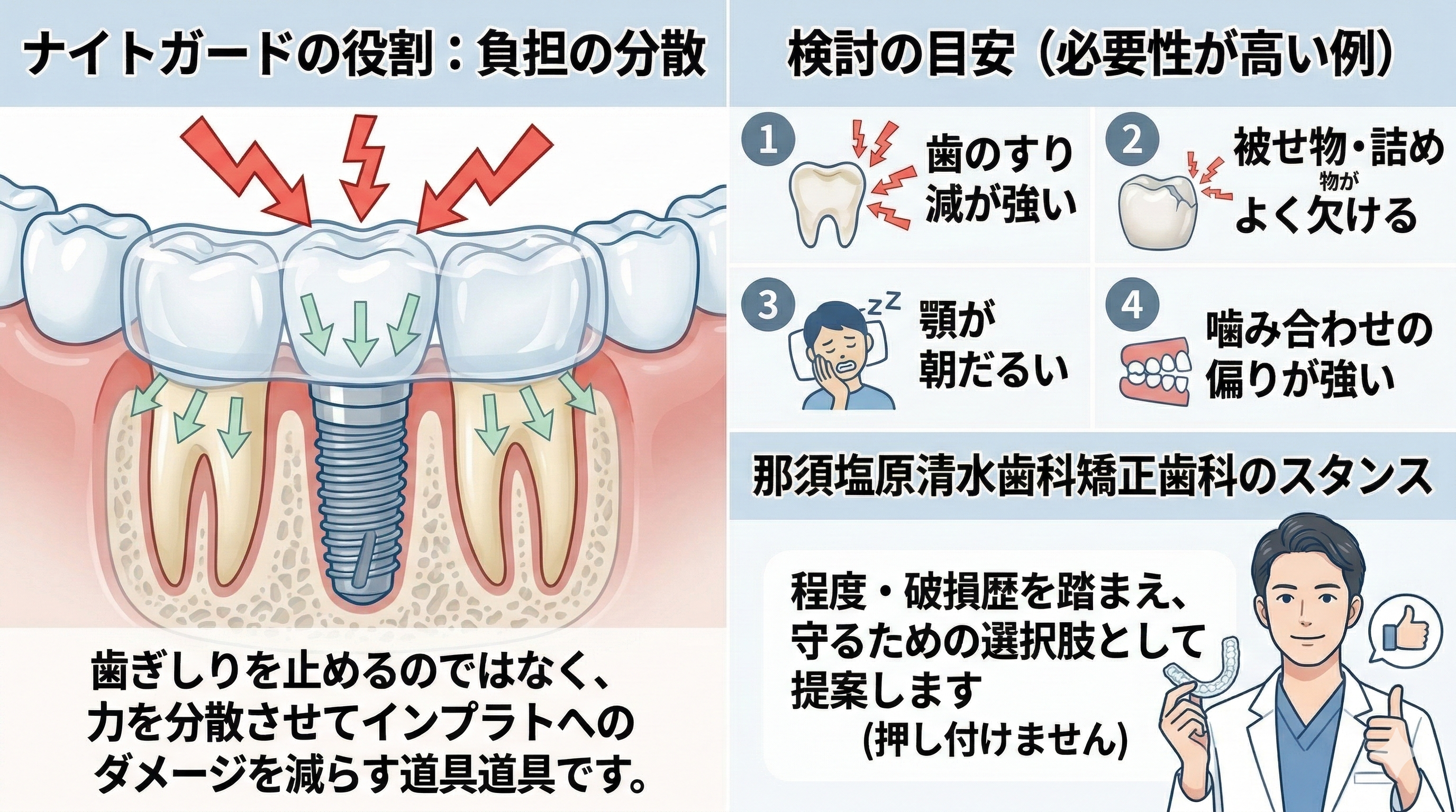 歯ぎしりがある人のインプラント|ナイトガードは必要?守り方の現実解(那須塩原)