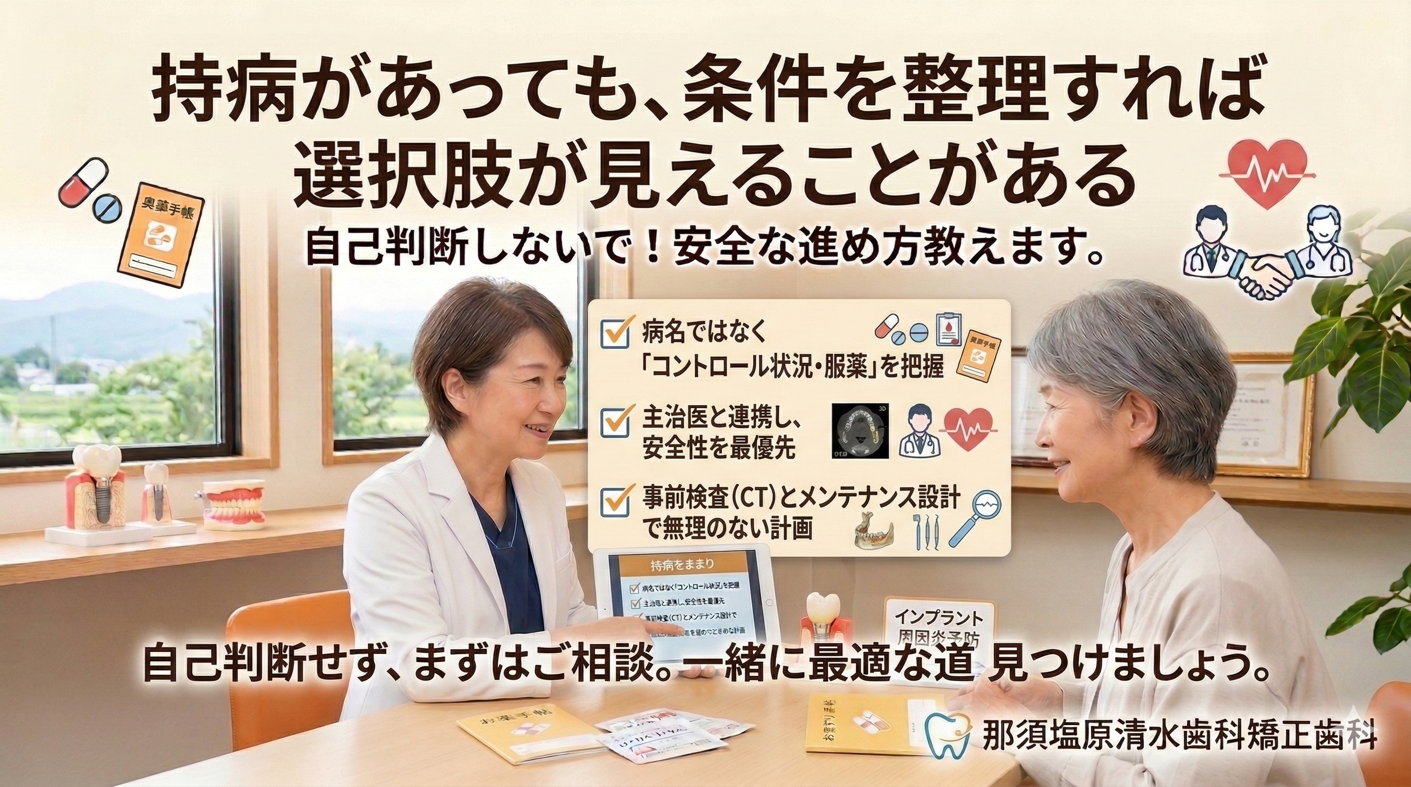 持病があってもインプラントできる?糖尿病・骨粗しょう症・服薬の考え方(那須塩原)
