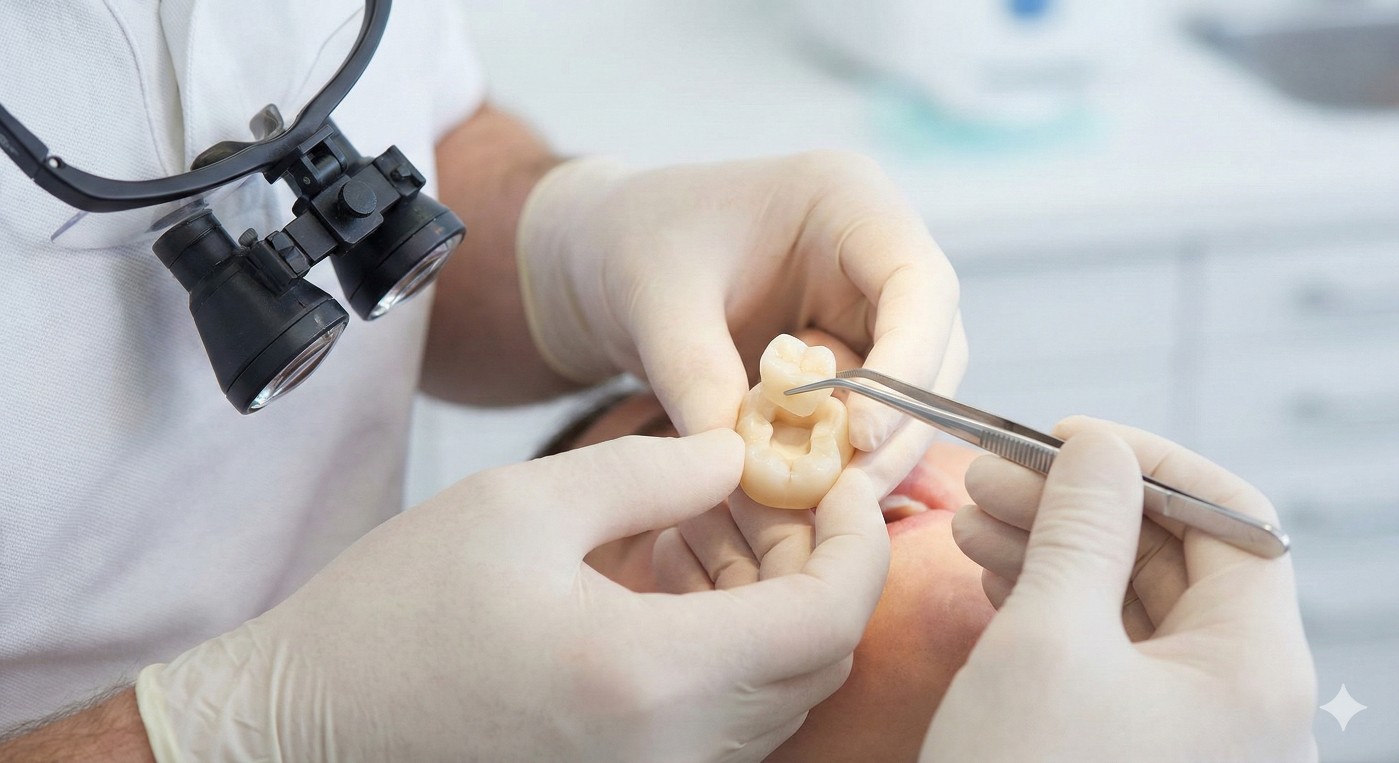 精密な適合: マイクロスコープを用いて、ミクロ単位の隙間もないように精密にセットします。